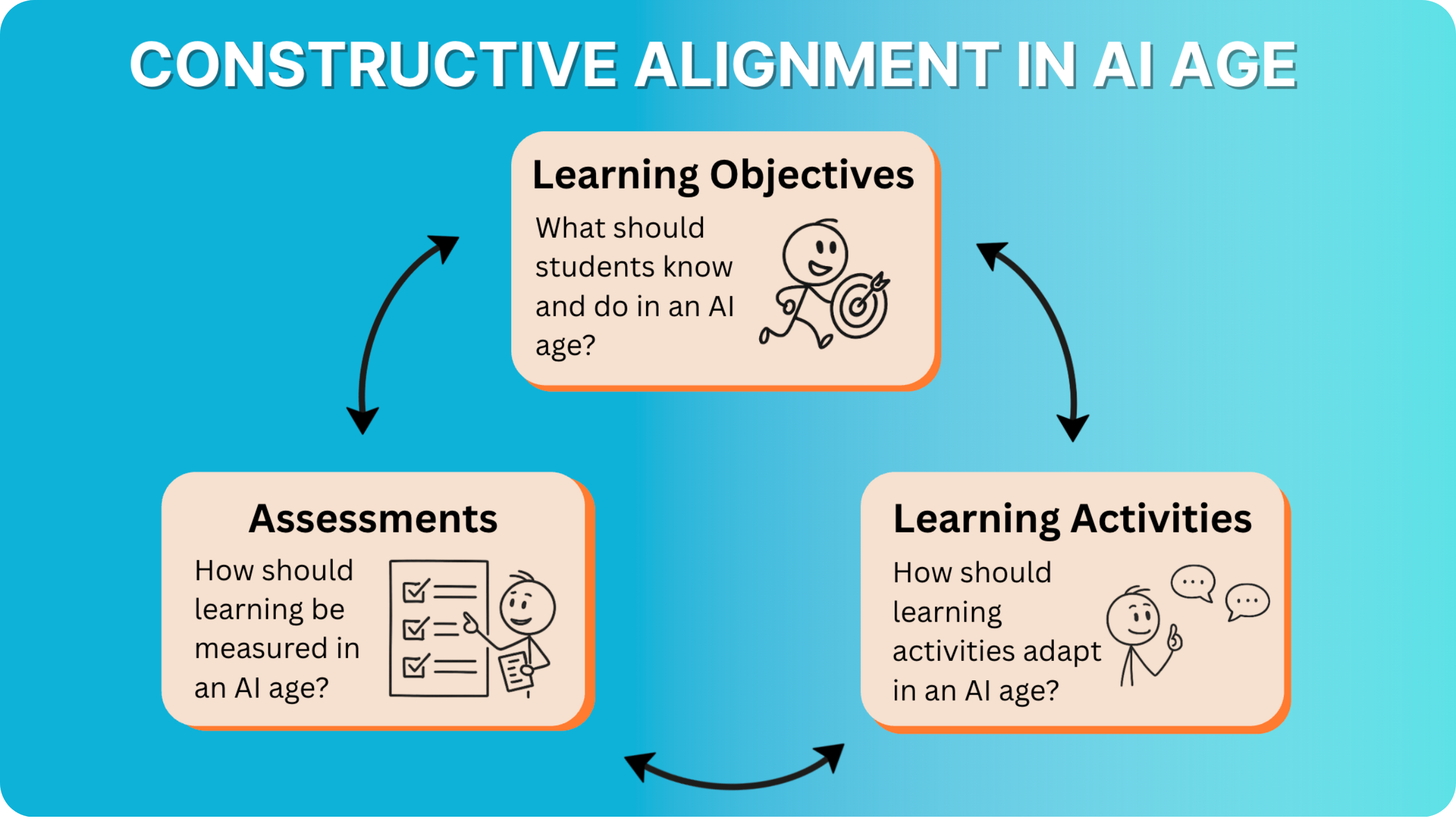 However, with the introduction of AI, tasks that once required students to think critically can now be completed in seconds. Thus, turning assignments into ways of evaluating prompting skills rather than learning. Hence, the challenge becomes redesigning aspects of constructive alignment to ensure that AI enhances student thinking, rather than replacing it.